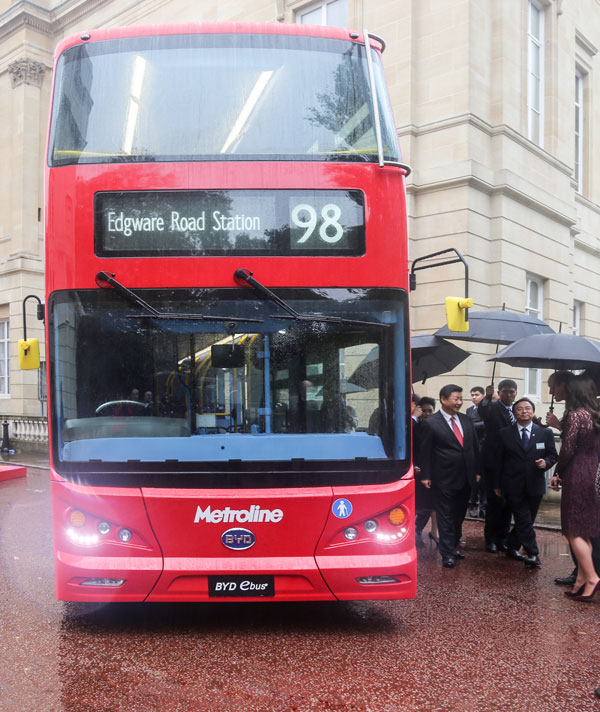 Chinese President Xi Jinping took time out from his historic State Visit to London today to view BYD’s pure electric double decker bus, making its world premiere appearance.