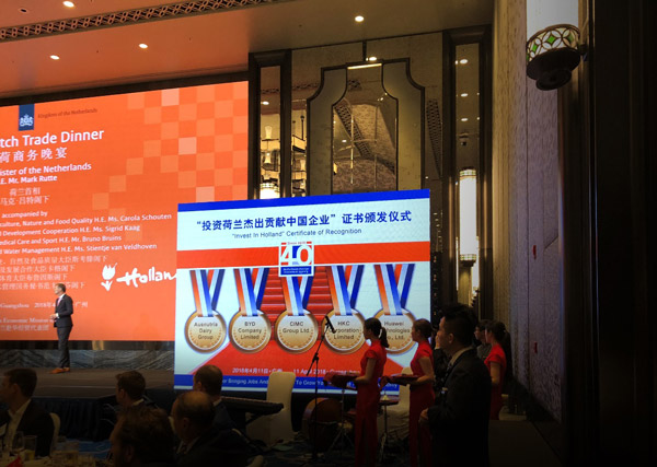 Minister of the Kingdom of the Netherlands, Mark Rutte, today in Guangzhou, China, marking the 40 years anniversary of the Netherlands Foreign Investment Agency (NFIA). The Trade Dinner is part of the Dutch cabinet’s Trade Mission to China from 8 to 13 April, led by the Prime Minister.