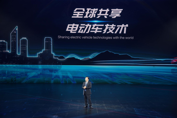 Wang Chuanfu, President and Chairman of BYD speaks at the gala
