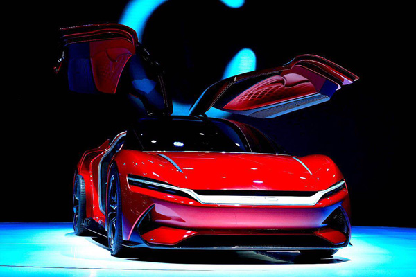 The E-SEED GT concept car represents the pinnacle of BYD's design, by fusing the expertise of the three international design experts, Wolfgang Egger, BYD Global Design Director, JuanMa Lopez, BYD Global Exterior Design Director and Michele Jauch-Paganetti, BYD Global Interior Design Director. The concept car uses the "Dragon Face" design language, successfully applying the elements of a Chinese dragon into a super car design, such as headlights resembling “dragon whiskers”, a “dragon ridge” on its roof, tail and seats and “dragon-scale” features on its door panels. It also boasts a three-screen interconnection, a retractable steering wheel plus a “BYD heart” and other technologies.