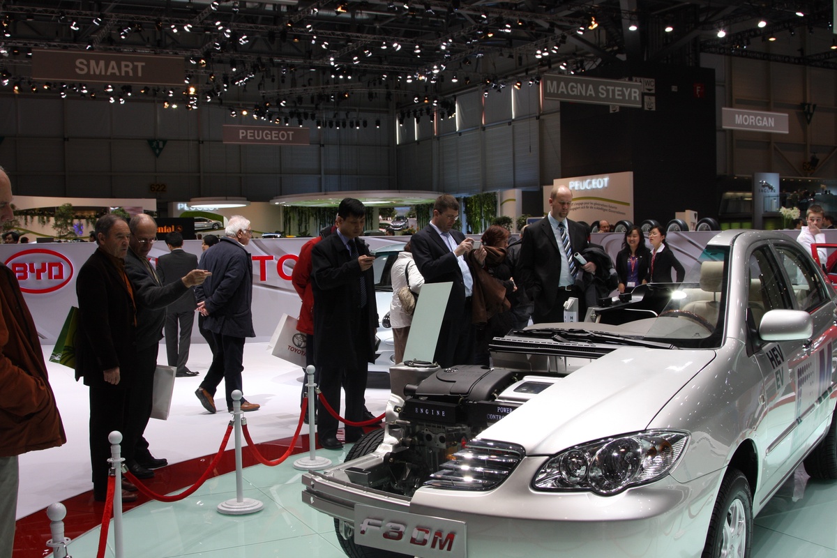 BYD at the Geneva Motor Show in 2008 with the world’s first PHEV F3DM