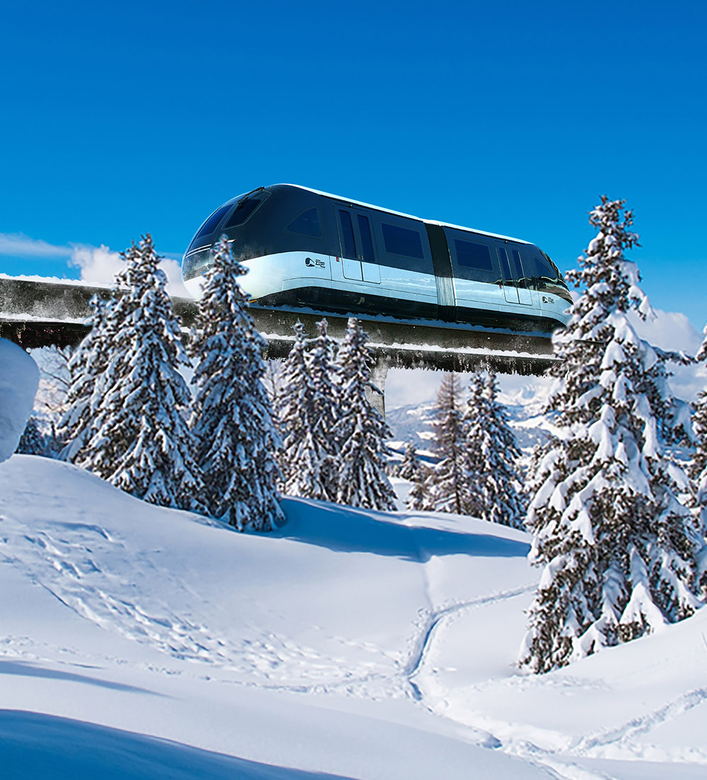 With over three times the gradeability compared to conventional rail systems and a significantly tighter turning radius, SkyRail seamlessly integrates into the existing cityscape. This avoids unnecessary demolition and reduces the complexity and cost of construction.
